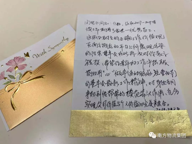继年底对公司年度先进/优秀个人进行表彰奖励之后,皇冠crown中国官方网站-在线登录入口又对连续3年获得先进/优秀个人的闵晓飞同志进行了特别奖励——开工大礼包和一封由皇冠crown中国官方网站-在线登录入口董事会亲笔写的表扬信。第一次收获这样特殊的奖励,闵晓飞表示很暖心,心情很激动,“非常荣幸,感谢公司优良的团队氛围及各位领导、同事的支持肯定与默契合作,今后我将在工作中投入更高的热忱,更加努力地完成公司的各项任务。”